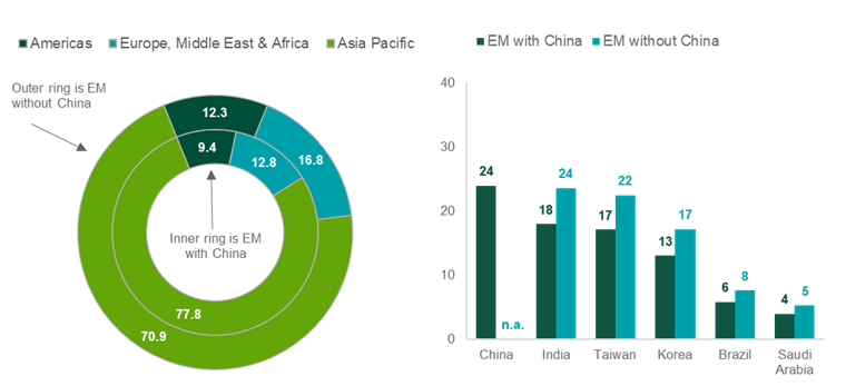 Exhibit 5: without China, Asia-Pacific still weighs heavily
