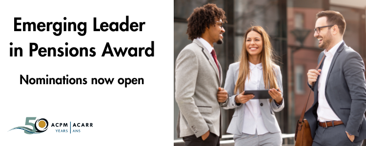 As part of its 50th anniversary, ACPM is pleased to introduce the Emerging Leader in Pensions Award – a national award recognizing professionals aged 40 and under who are making meaningful contributions to Canada’s retirement system.